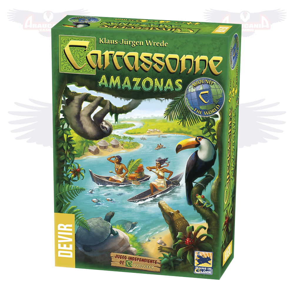 Carcassonne Amazonas es un juego de mesa en donde los jugadores navegan sus botes por el Amazonas para descubrir la abundante vida salvaje.