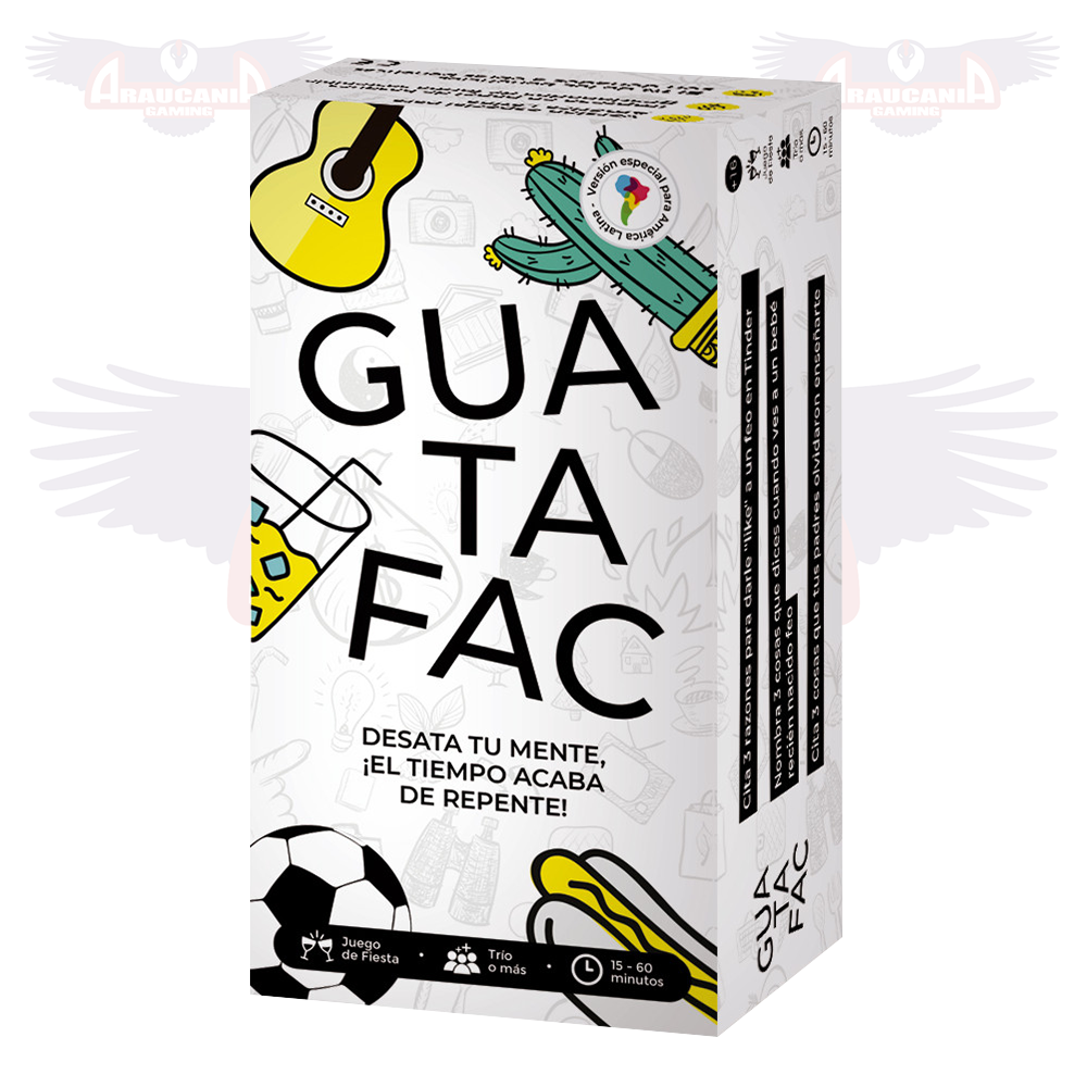 Guatafac es un juego de cartas perfecto para largas noches de risas con amigos. Este consiste en responder en menos de ocho segundos a divertidas, absurdas e irreverentes preguntas.