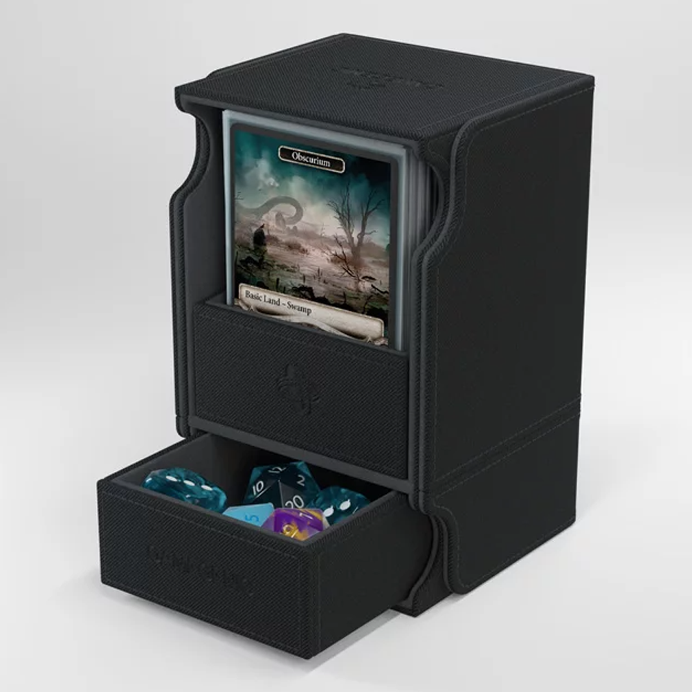 Modelo convertible Watchtower combina caja para mazos, cajón para accesorios y bandeja para cartas en un elegante producto. Su innovadora bandeja para cartas se puede extraer y utilizarse como caja para mazos durante las partidas. Podrás ver tus cartas perfectamente cuando vayas a robarlas. Además, el cajón para accesorios es perfecto para guardar dados, fichas y otros artículos pequeños.