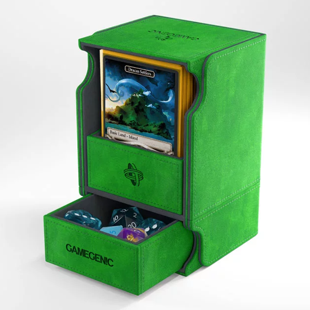 Modelo convertible Watchtower combina caja para mazos, cajón para accesorios y bandeja para cartas en un elegante producto. Su innovadora bandeja para cartas se puede extraer y utilizarse como caja para mazos durante las partidas. Podrás ver tus cartas perfectamente cuando vayas a robarlas. Además, el cajón para accesorios es perfecto para guardar dados, fichas y otros artículos pequeños.