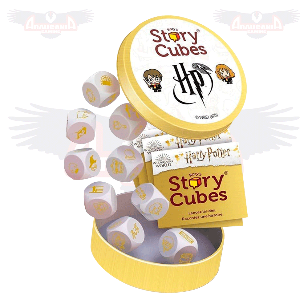 Lanza los dados y, comenzando por “Érase una vez…”, invéntate una historia basado en tus magos favoritos del Colegio Hogwarts y que involucre los 9 resultados de los dados. Cada dado tiene 6 imágenes o iconos, un total de 54 ideas que mezcladas pueden generar más de 10 millones de combinaciones.