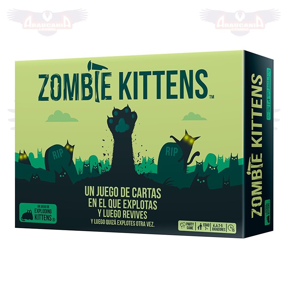 Usa las cartas de acción para mover y evitar al Exploding Kitten y levántate entre los muertos con la carta Zombie Kitten para vengarte.